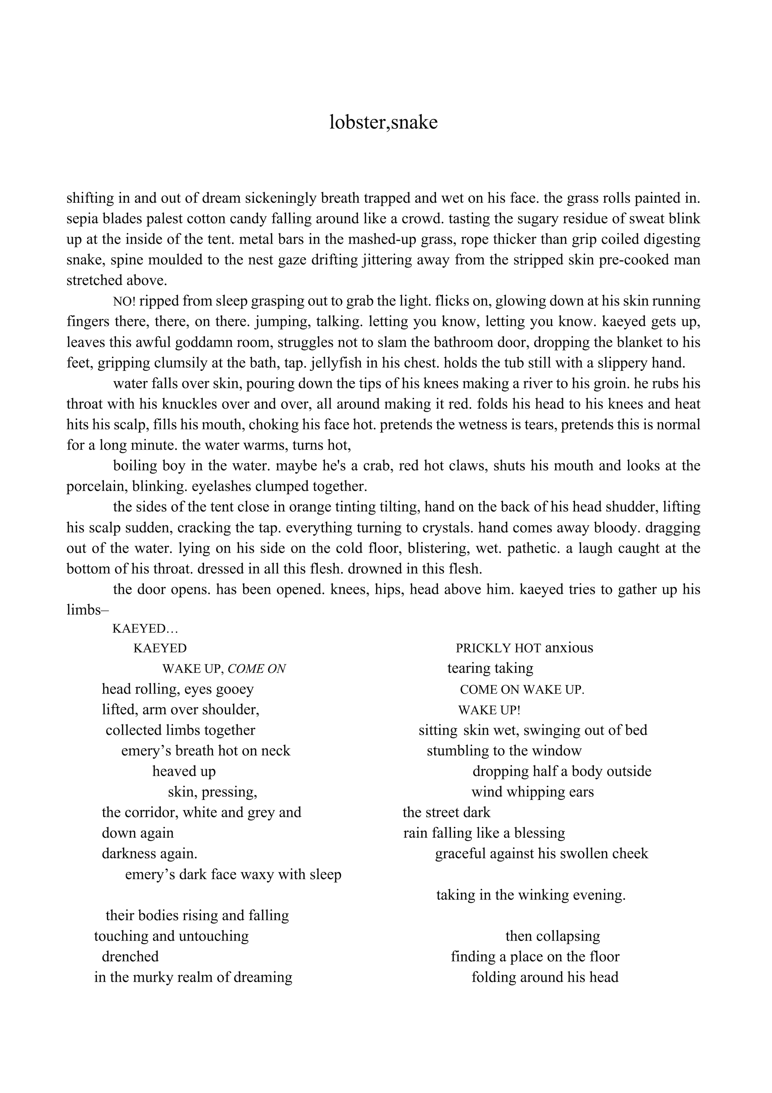 Extract from my speculative fiction project Break Tender. Published in Transcribed, an anthology of trans writing.